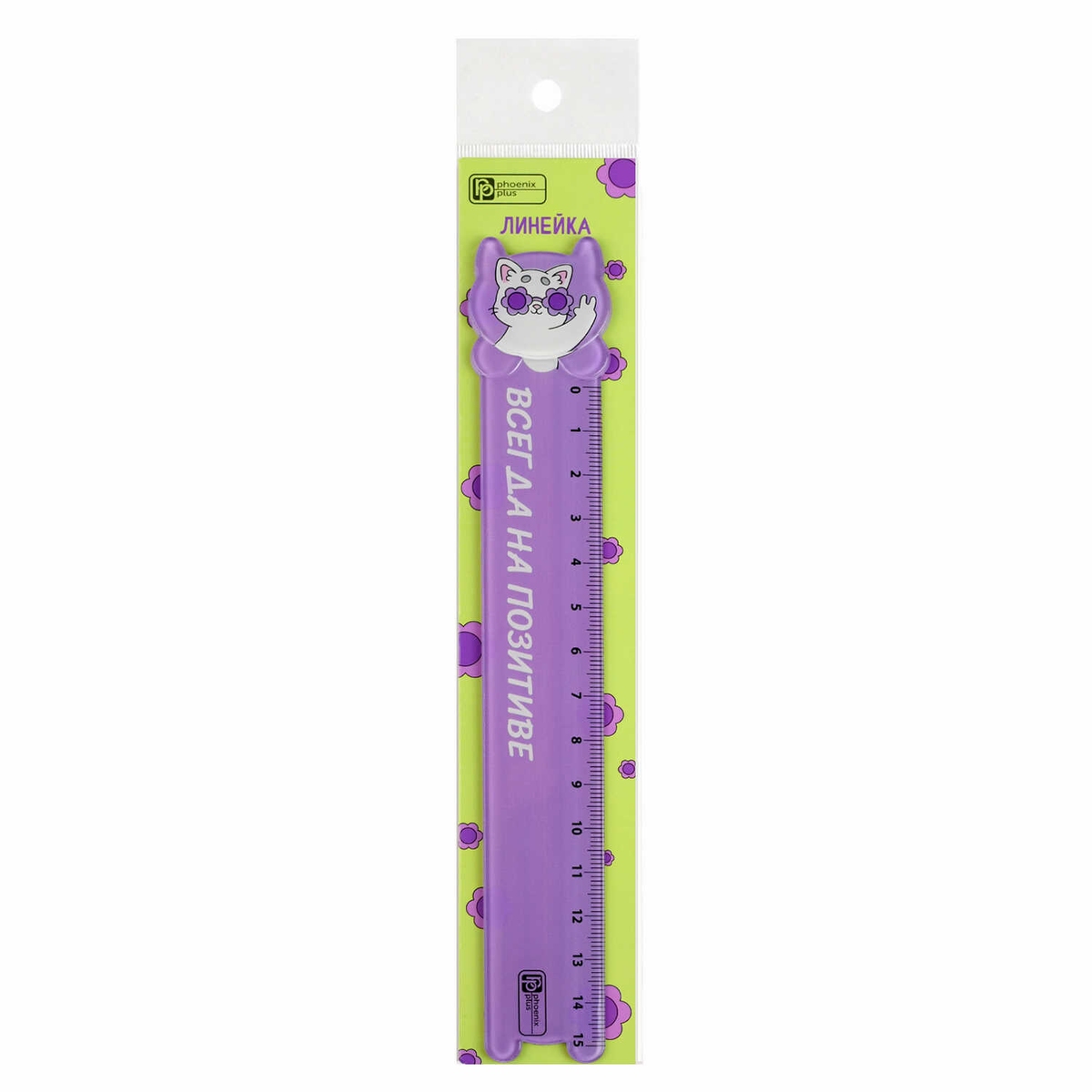 Линейка пластик 15см КОТЕНОК В ОЧКАХ 68497