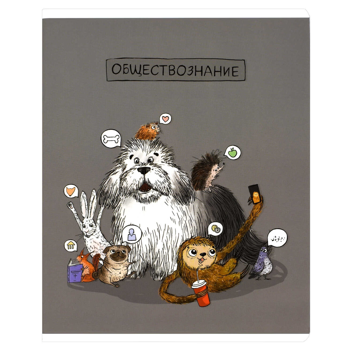 Тетрадь предметная арт. 63417/ 16 "ПЁС УЧЁНЫЙ" ОБЩЕСТВОЗНАНИЕ /48 л., А5+, вн.блок - клетка, белый о