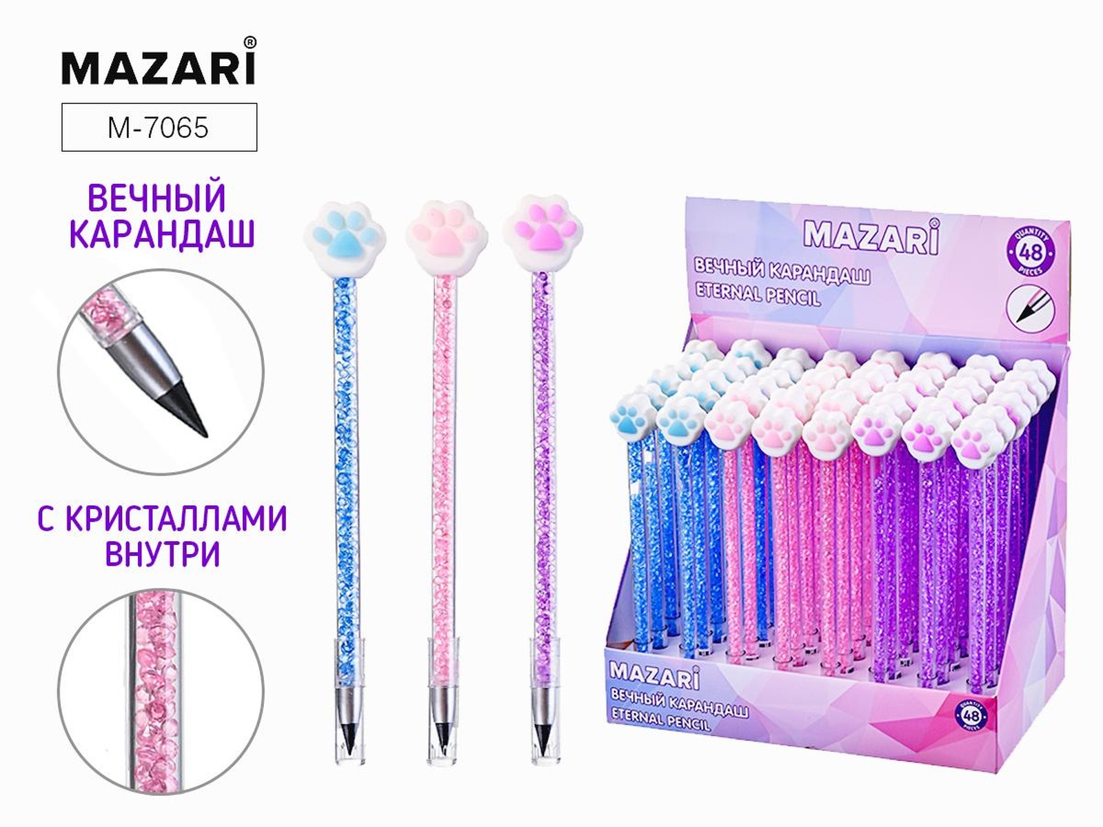 Карандаш вечный ЛАПКИ С КРИСТАЛЛАМИ M-7065