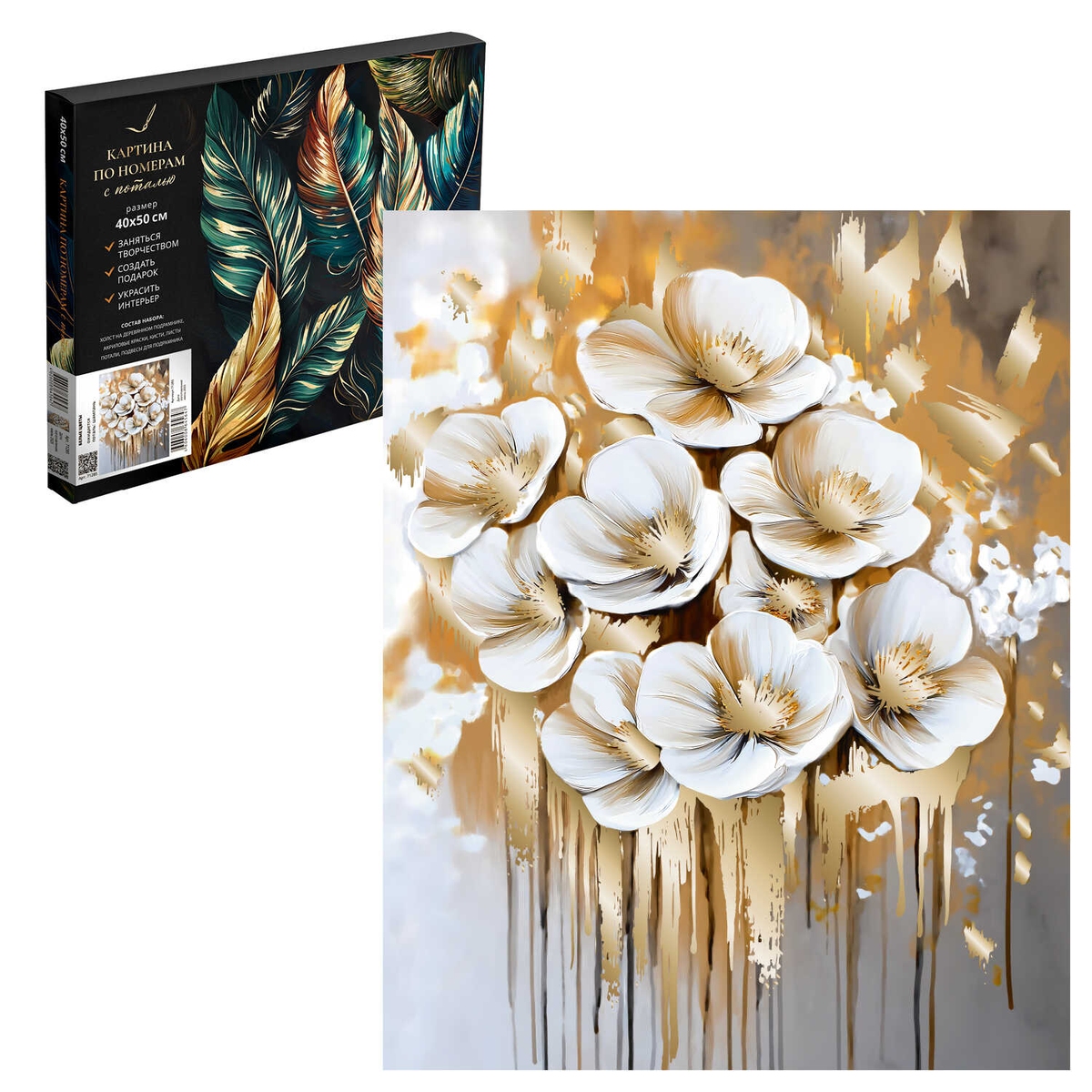 Картина по номерам с поталью БЕЛЫЕ ЦВЕТЫ 71285