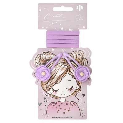 Набор аксессуаров для волос ЦВЕТОЧКИ 2 заколки клик-клак 4 резинки в наборе 71762