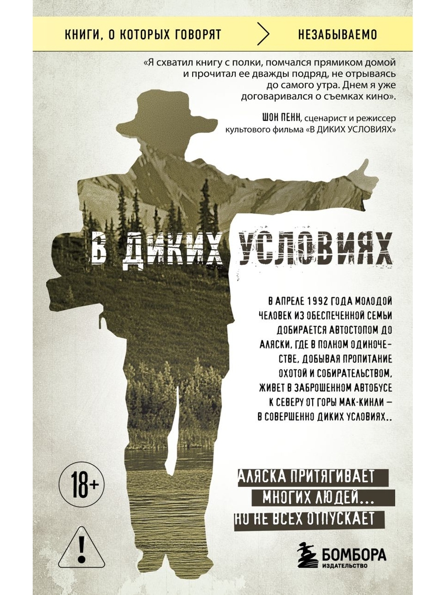 НЕЗАКОННОЕ ПОТРЕБЛЕНИЕ НАРКОТИЧЕСКИХ СРЕДСТВ, ПСИХОТРОПНЫХ ВЕЩЕСТВ, ИХ АНАЛОГОВ ПРИЧИНЯЕТ ВРЕД ЗДОРОВЬЮ, ИХ НЕЗАКОННЫЙ ОБОРОТ ЗАПРЕЩЕН И ВЛЕЧЕТ УСТАНОВЛЕННУЮ ЗАКОНОДАТЕЛЬСТВОМ ОТВЕТСТВЕННОСТЬ. Об авторе Американский писатель, журналист и альпинист. Среди наиболее известных его произведений — книги «В диких условиях» и «В разреженном воздухе». Сегодня Джон Кракауэр один из самых влиятельных писателей в Америке, его книги издаются многотысячными тиражами, по ним снимаются документальные и художественные фильмы. Шон Пенн о книге: «Я схватил книгу с полки, помчался прямиком домой и прочитал ее дважды подряд, не отрываясь до самого утра. Утром я уже договаривался о съемках кино». О съемках фильма Шон Пенн готовился к съемкам этого фильма почти десять лет. Книгу Джона Кракауэра он прочел за одну ночь в 1996 году, после чего немедленно приступил к переговорам с родителями МакКэндлесса о ее экранизации. Однако, когда все уже было готово к съемкам, родители передумали и отказались… Пенн терпеливо ждал их согласия до 2006 года, пока они сами не позвонили ему и не сказали, что готовы дать свое разрешение на экранизацию.