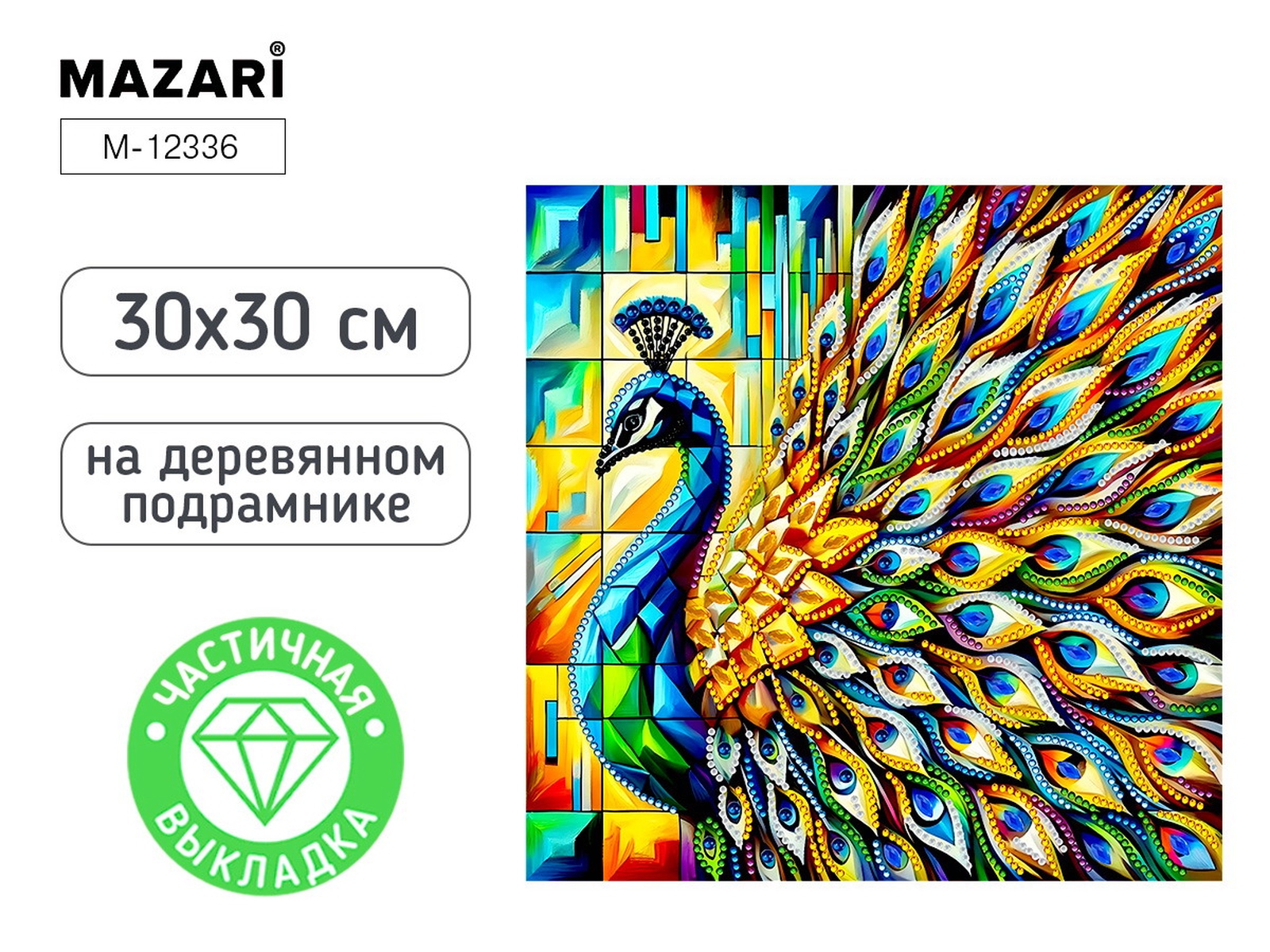 Алмазная мозаика ПАВЛИН 30X30 см частичная выкладка M-12336