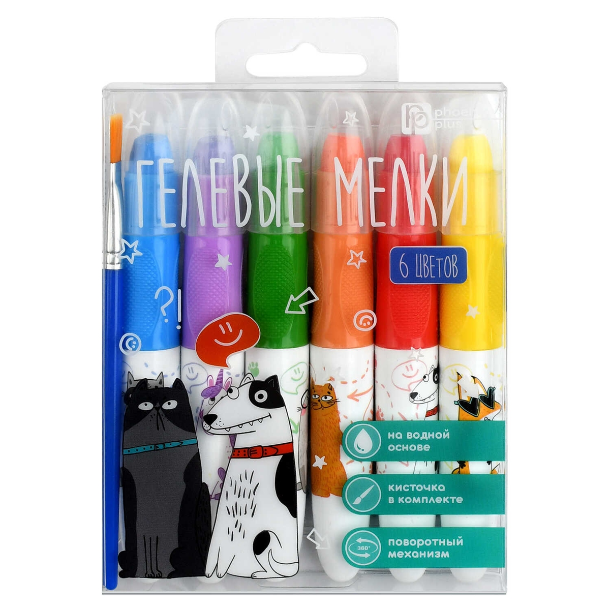 Набор гелевых мелков 6 шт с кисточкой ПВХ-коробка с европодвесом 72262