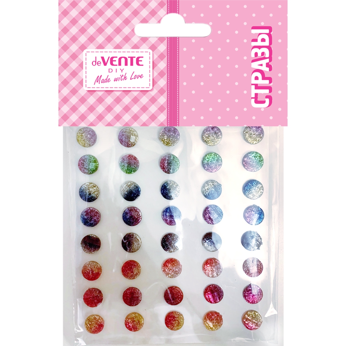 Стразы акриловые самоклеящиеся Glitter Bubble 40 шт 10 мм радужные с глиттером 8002597
