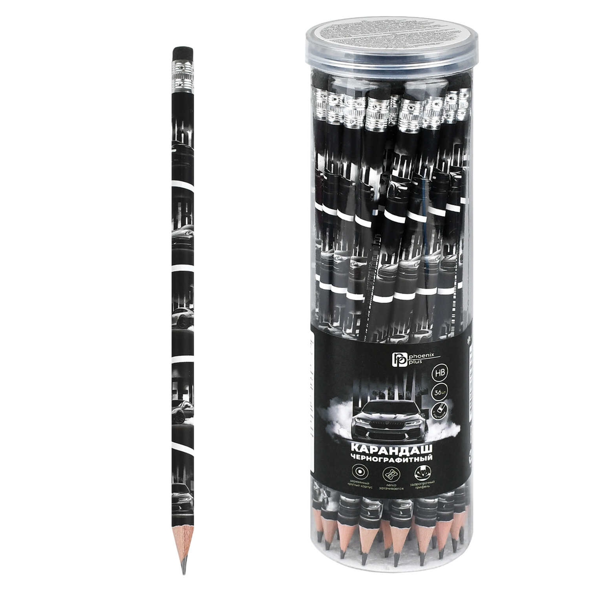 Карандаш ч/г HB с ластиком ФОРСАЖ 72852