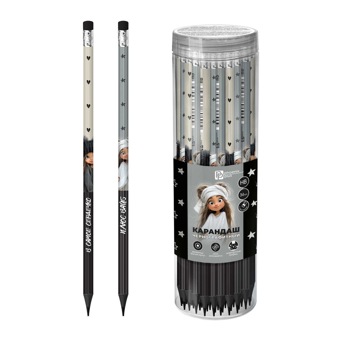 Карандаш ч/г HB с ластиком ДЕВЧОНКИ НА СТИЛЕ 72858
