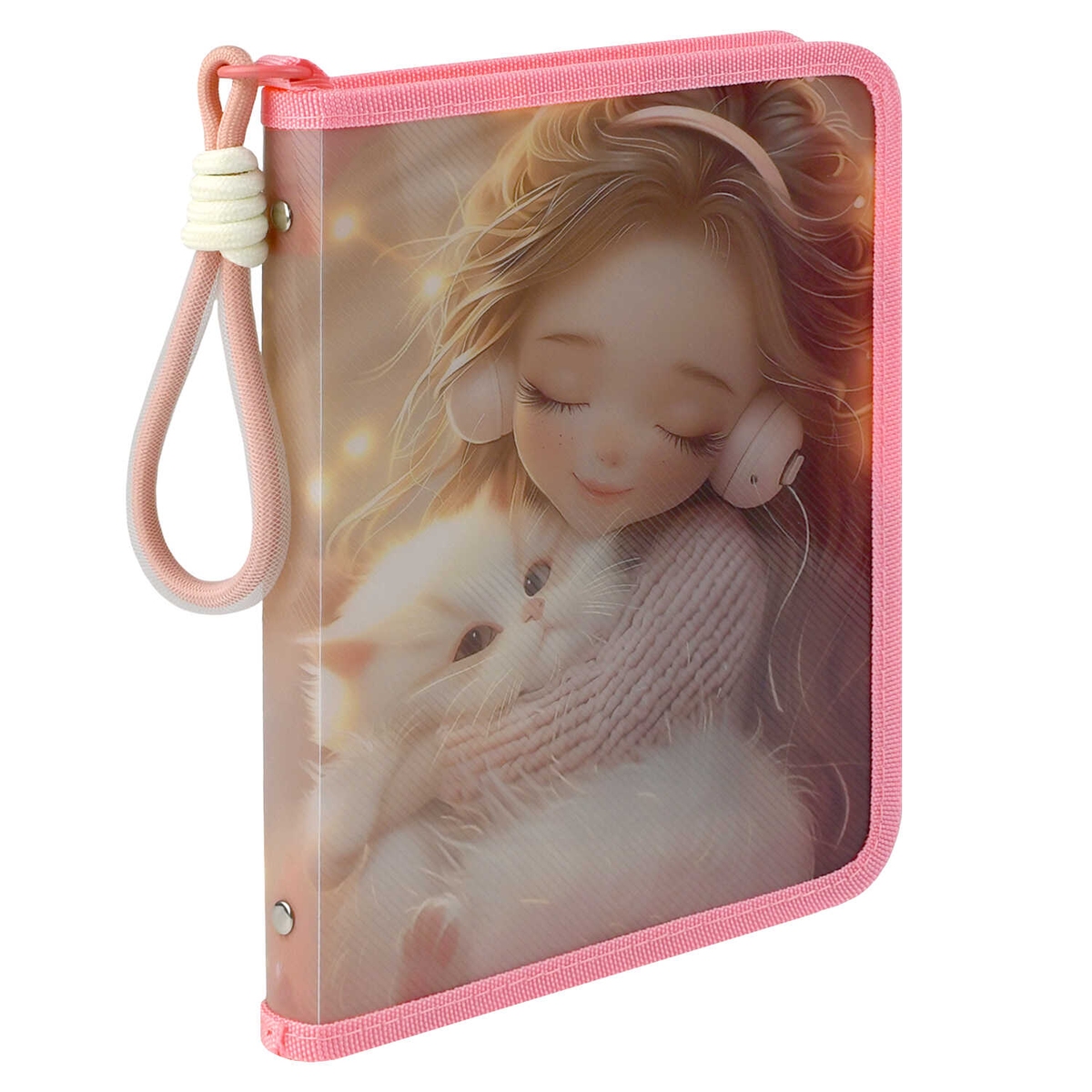 Папка для тетрадей пластиковая ДЕВОЧКА В НАУШНИКАХ И КОТЕНОК на молнии А5 72367