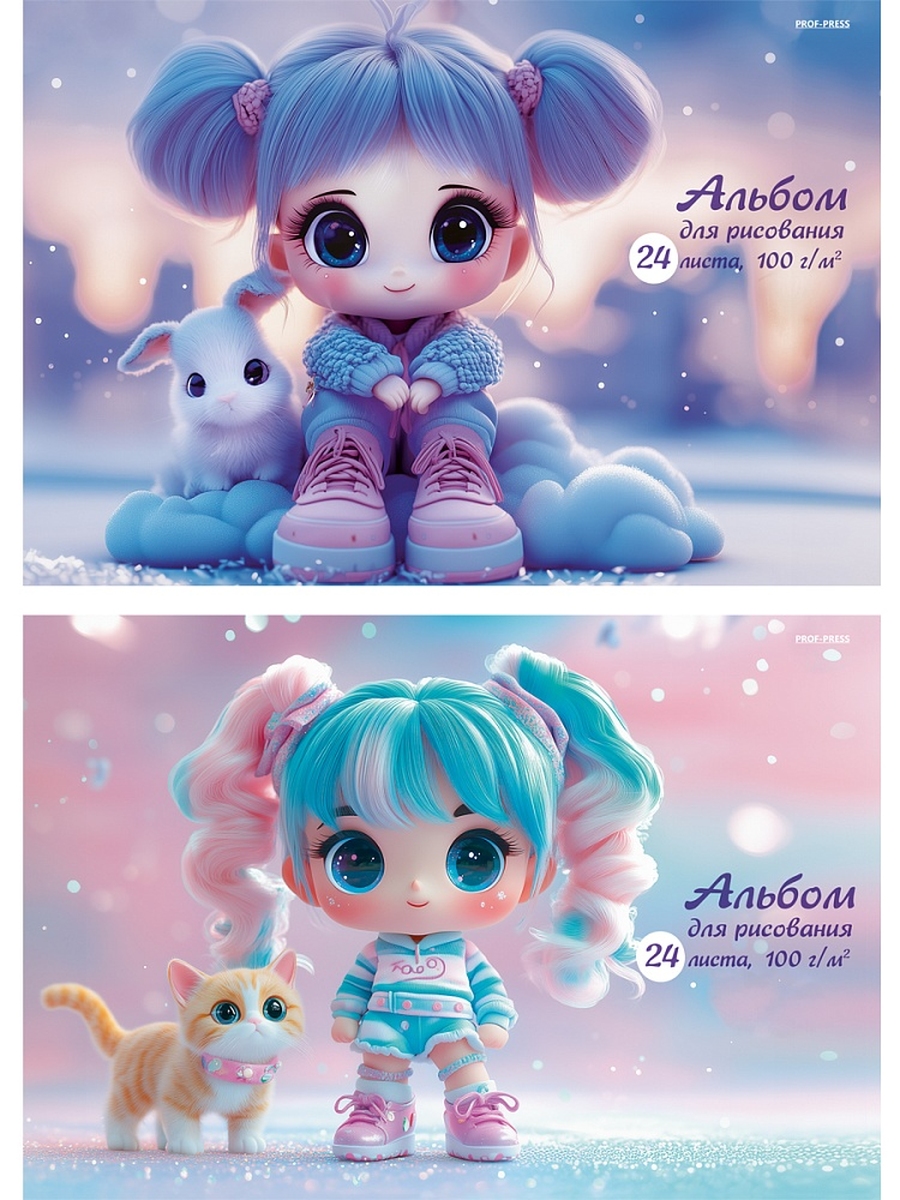 Альбом 24л ДЕВОЧКИ И ЗВЕРЯТА - 1 скрепка 24-7875