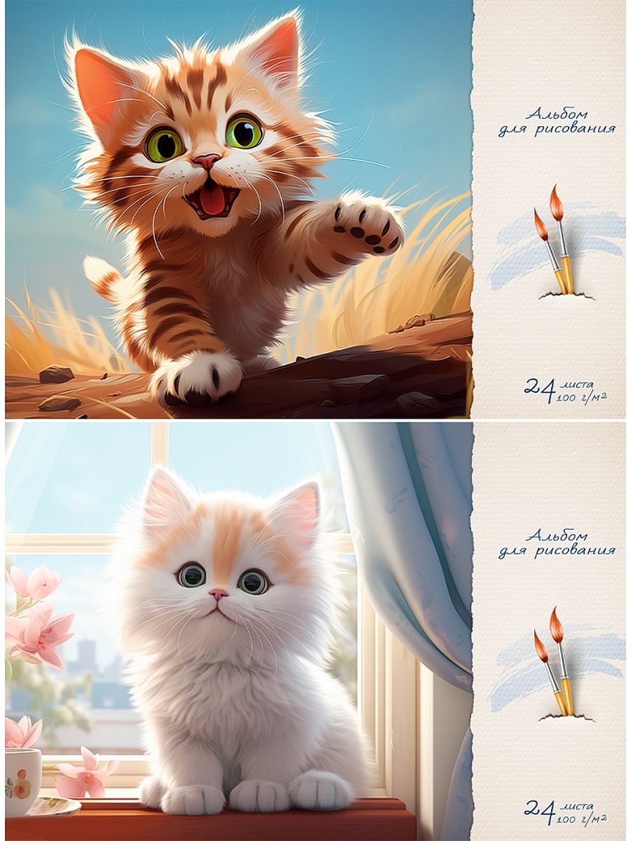 Альбом для рисования 24л А4 ПУШИСТЫЕ КОТИКИ 24-7502