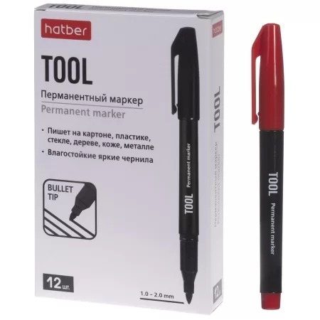 Маркер перманентный Красный Тул пишущий узел 1-2мм закругленный 12шт PM_092502