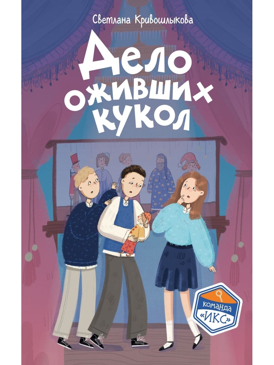 Новая детективная серия для поклонников «Чёрного котёнка» и «Мейзи Хитчинс»! Добро пожаловать в школу-пансион с вековой историей, где за старинными стенами скрываются самые необычные тайны! Светлана Кривошлыкова — автор многочисленных книг для детей и подростков, победитель литературного конкурса «Open Eurasia-2018», председатель Союза детских и юношеских писателей. Трое друзей — Илья, Кира и Сашка — объединяются в команду «ИКС», чтобы расследовать загадочные события. Они учатся, дружат, ссорятся и мирятся… а ещё — берутся за дела, от которых даже у учителей бегут мурашки! Действие историй разворачивается в уникальном месте — школе-пансионе, расположенной в бывшей купеческой усадьбе девятнадцатого века. Светлана Кривошлыкова мастерски описала загадочную атмосферу старинного здания и тайны, хранящиеся в нём. Соединение духа закрытого пансиона с современной жизнью обычных школьников делает чтение увлекательным, а раскрытие тайн — запоминающимся. В школе готовятся к «Ночи театра», но шумное веселье внезапно прерывается. Главные экспонаты актового зала — старинные куклы купца Платонова — оживают! Неужели над школой нависло новое проклятие? Или кто-то захотел подшутить над учениками? Команде «ИКС» необходимо во всём разобраться. Сможет ли команда «ИКС» разгадать тайну оживших кукол? История внутри каждой книги закончена: одна книга — одна загадка. Книги серии можно читать как отдельно друг от друга, так и вместе. Книги рассчитаны на детей от 8 лет и старше. Подойдут для внеклассного чтения. Ребёнок не устанет читать: в книгах крупный шрифт, белая бумага, запоминающееся оформление.