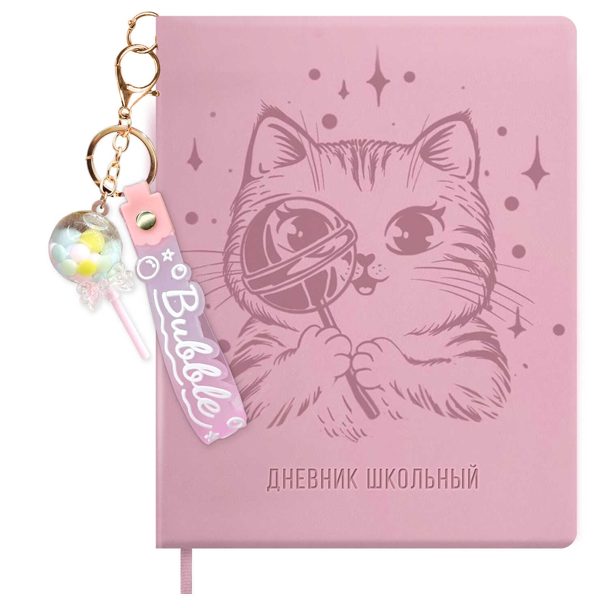 Дневник 1-11 КОТИК С ЛЕДЕНЦОМ с брелоком кожзам тв 72516