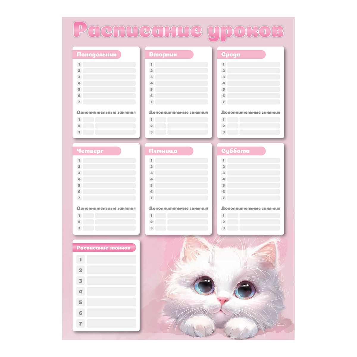 Расписание уроков А3 БЕЛЫЙ КОТ 297х420 мм мелованный картон 72582