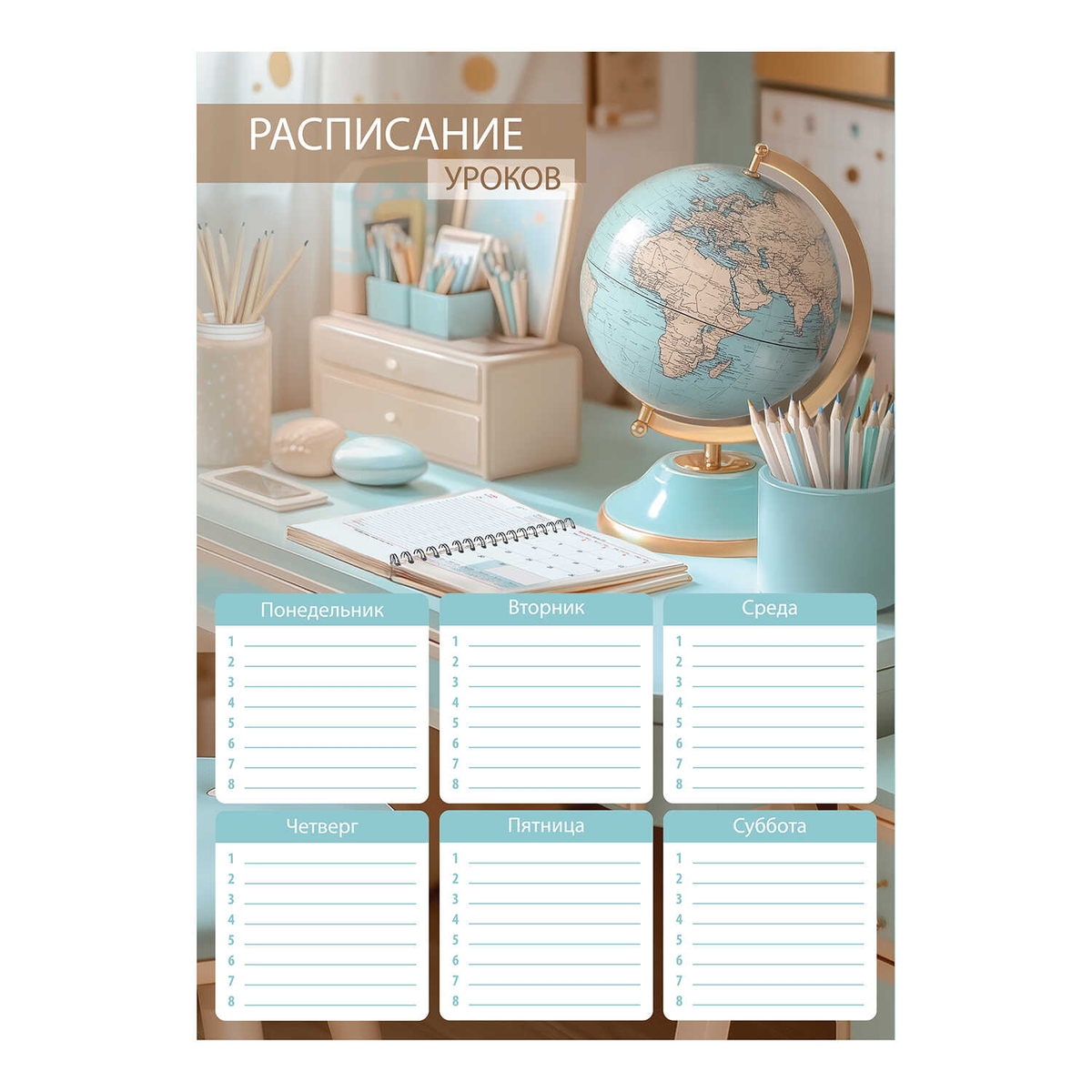 Расписание уроков А4 ГЛОБУС 210x297 мм мелованный картон 72585
