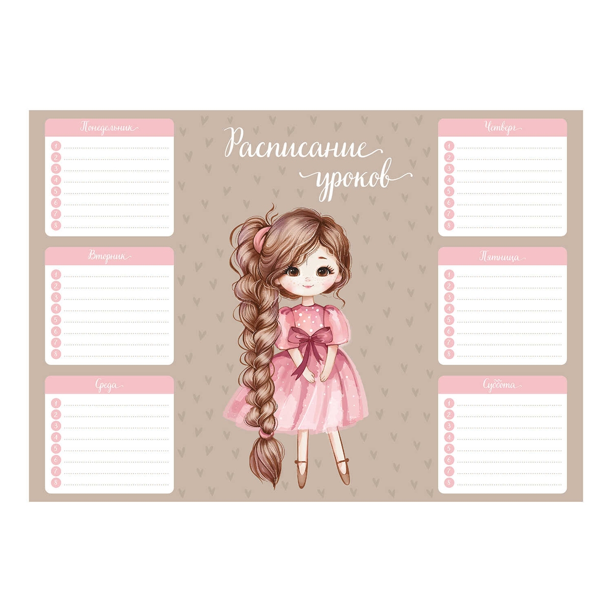 Расписание уроков А4 ДЕВОЧКА С КОСОЙ 210x297 мм мелованный картон 72586