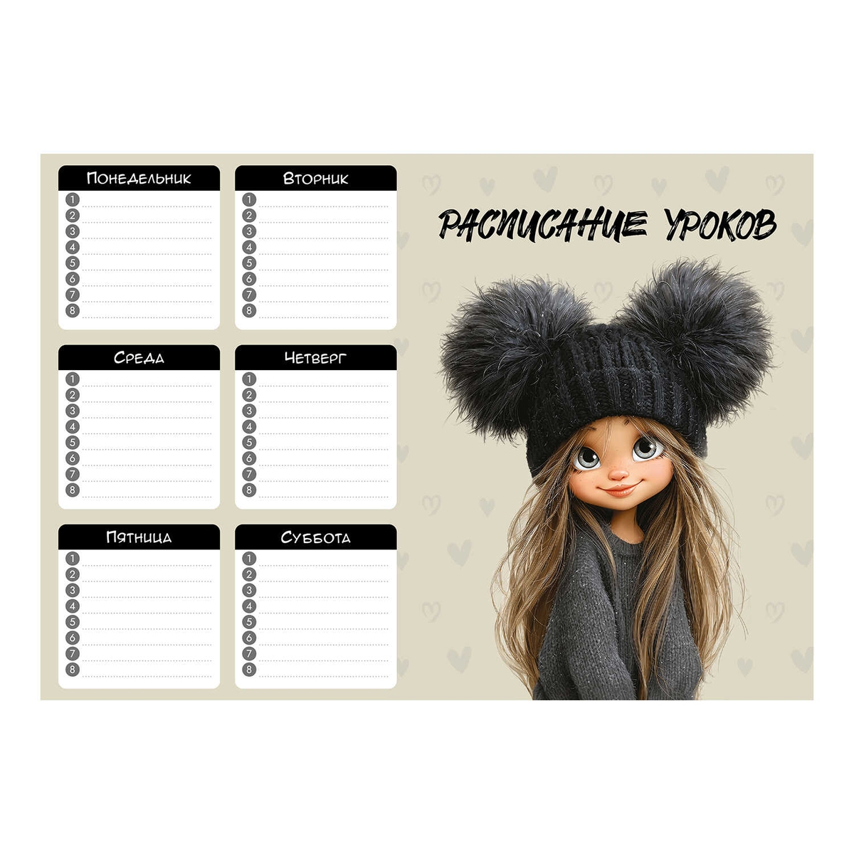 Расписание уроков А4 ДЕВЧОНКА В ШАПКЕ 210x297 мм мелованный картон 72588