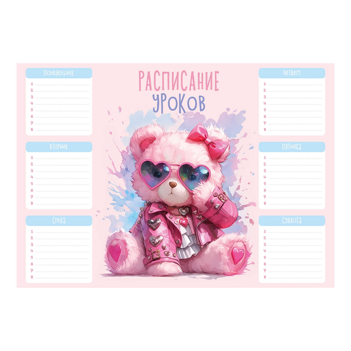 Расписание уроков А4 РОЗОВЫЙ МИШКА 210x297 мм мелованный картон 72589