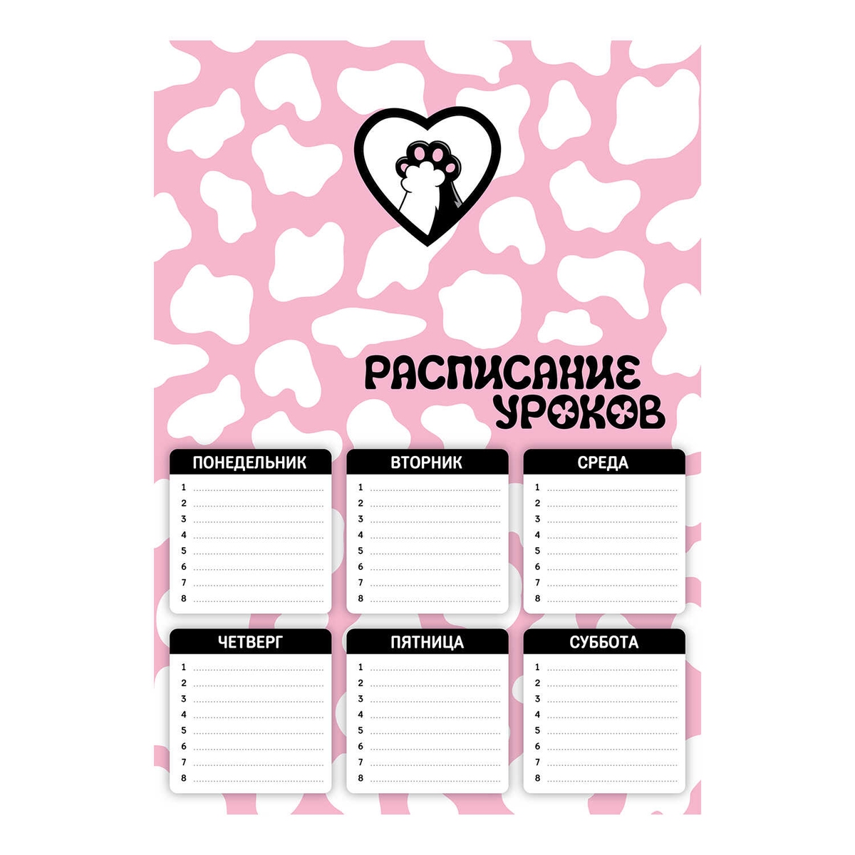 Расписание уроков А4 КОТОЛАПЫ 210x297 мм мелованный картон 72592