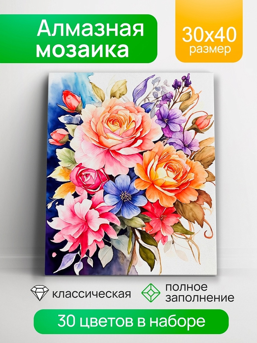 Алмаз мозаика класс 30х40 см квадрат с полн запол 30цв Чудесный букет АЛМ-0084