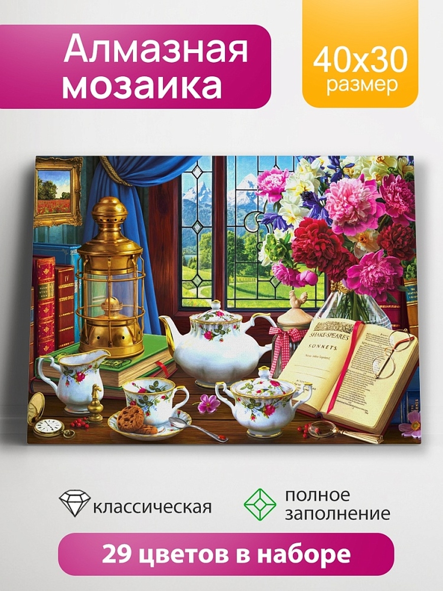 Алмаз мозаика класс 30х40 смс подр с полн заполн 24цв Натюрморт с сервизом НД-8589