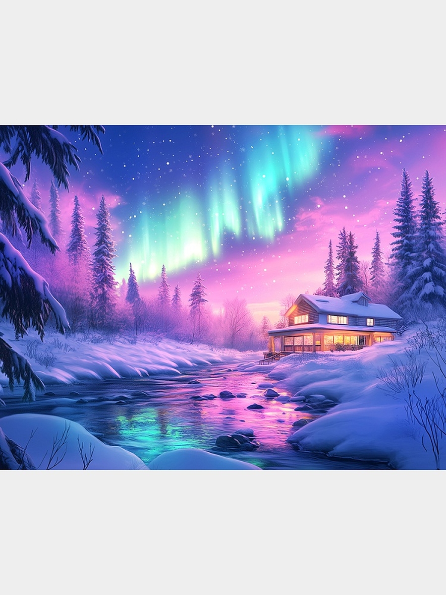 Холст с красками 17х22 см Домик на Севере по номерам14цв ХК-0479