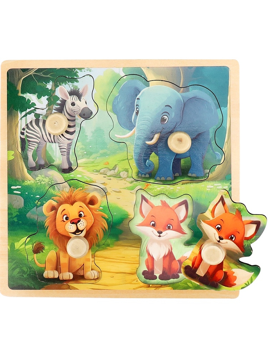 Деревянная игрушка Рамка вкладыш 15x15x0,7 см Животные Африки 2 ИД-0177